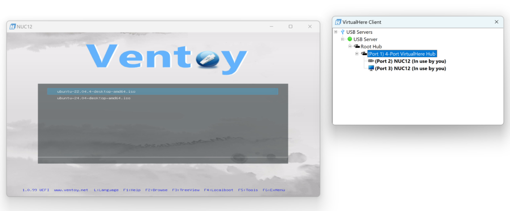 For example to boot the target with an ISO image (e.g Ventoy). This feature requires two VirtualHere USB Hubs connected to each other.